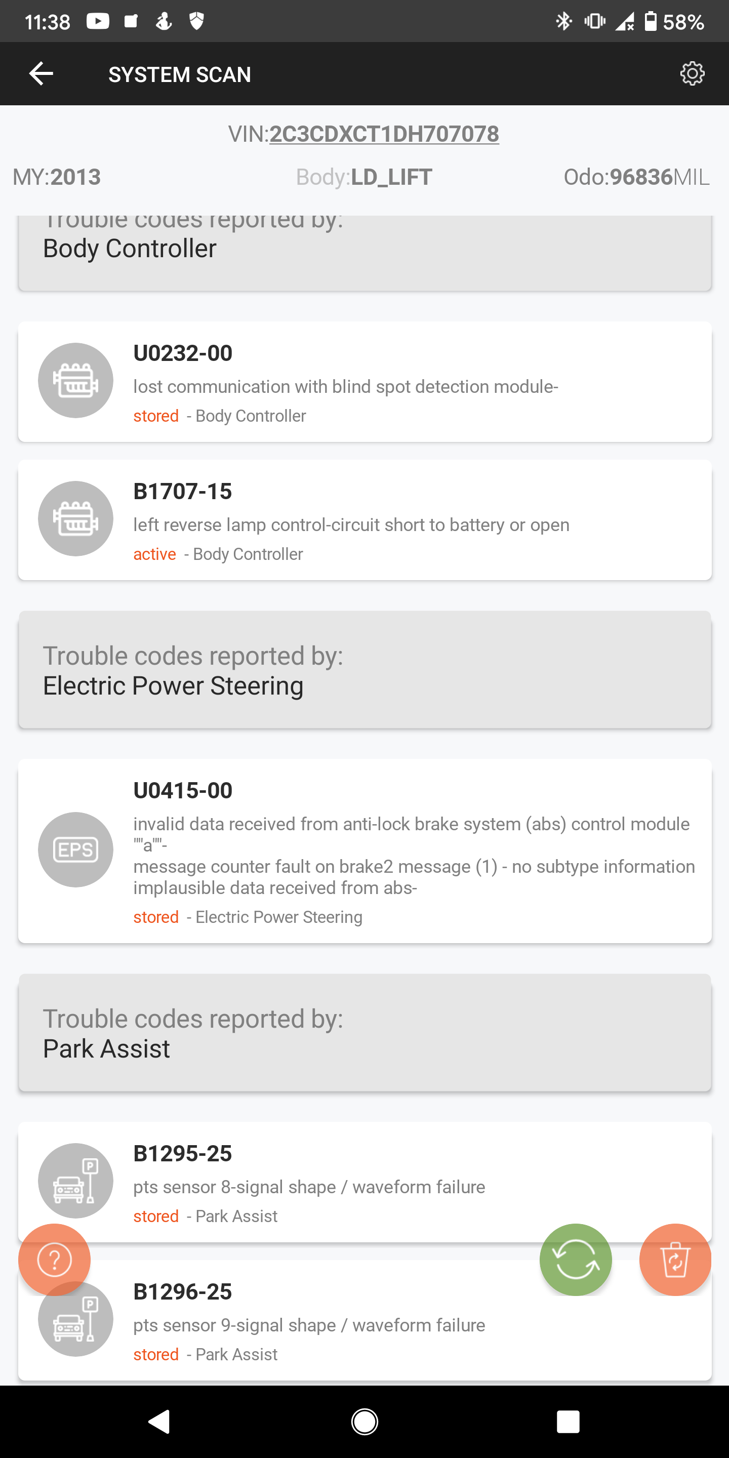 Wyskoczył dwa dni temu błąd na ekranie. Po podpięcie testera błędy odczytane(zdj)